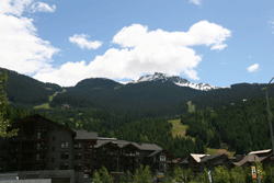 Hwy-99 の山道を走っていると雨が激しくなってきた。30分ほど大雨の中をゆっくり走る。ウィスラーの手前でやっと雨が上がり青空がみえてきた。ウィスラーの街に入ってみるが、人も車も多くて、ここだけ都会みたいで、スルッと走り抜けて街はずれのレストランで少し遅めのランチにする。日程に余裕があればウィスラーで一泊してハイキングでも楽しむのですが、今回は素通りします。