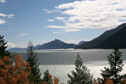 Shannon Falls と呼ばれる滝で落差335mで結構迫力がある。スコーミッシュを過ぎる右側に海が見えてきた。もうすぐバンクーバーです。