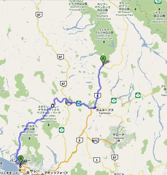 クリアウォターを出発、Hwy-5 を南下し、カムルーブスからトランス・カナダ・ハイウェイHwy-1