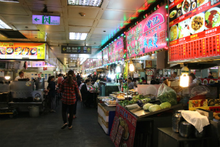 台北観光の人気スポットのひとつが夜市ですが、台湾では共働き世帯が多く、家族で外食することが多いため、夜市が発展したそうです。食事だけでなく、衣料品や雑貨、ゲームの屋台もあります。士林夜市は台北最大の夜市で、少し前にリニューアルされて現代的な建物の中に小さなお店がごちゃごちゃと詰め込まれた感じです。 |