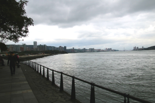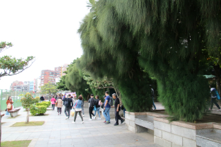 淡水駅で降りると多くの人が街に向かっていきます。私たちは賑わっている商店街は通らず、川沿いの遊歩道を散策します。