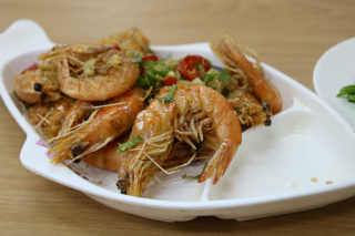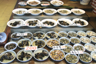 お腹も減ってきたので余家孔雀蛤大王という海鮮レストランに入り、ムール貝、海老、空芯菜の料理を頂きました。もちろん、台湾ビールで喉も潤しました。