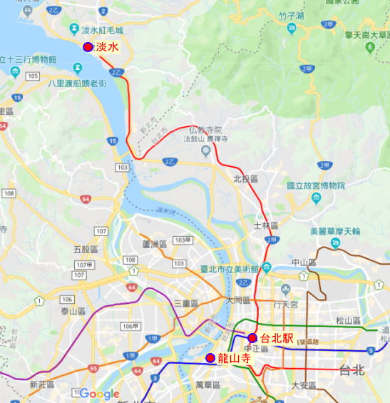 MRTの龍山寺駅から板南線で台北駅まで戻り、淡水信義線で淡水に向かいます。台北駅から40分ほどのところにある淡水は淡水河の河口にある街で夕陽が美しいと言われています。でも、今日は雲が厚くて夕陽は期待できそうにありません。
